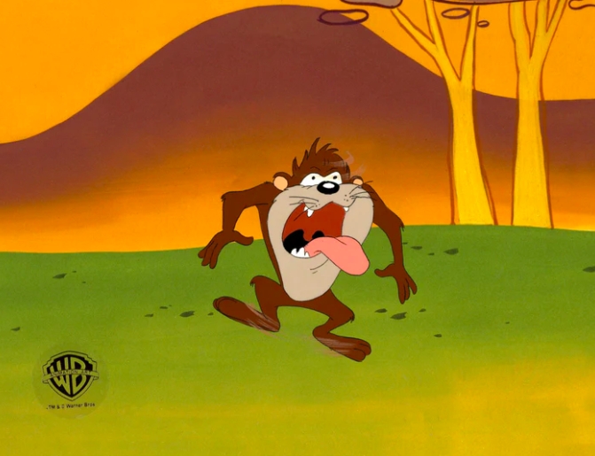 This is a hand painted original production cel used in making an episode of Tazmania. Featured here is Taz.