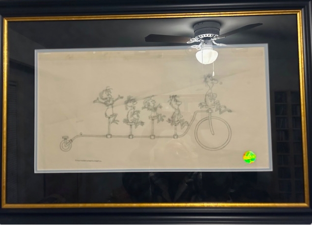 This is an original production drawing used in making "The Grinch" 1966. This is part of a private estate sale and comes with studio seal and certificate of authenticity. Comes unframed or framed as is. Featured here are the Whos. This is signed by Chuck Jones. Contact us for shipping outside North America.