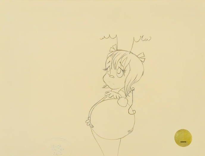This is an original production drawing used in making "How The Grinch Stole Christmas" 1966. Featured here is Cindy Lou Who.