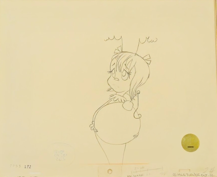 This is an original production drawing used in making "How The Grinch Stole Christmas" 1966. Featured here is Cindy Lou Who. Unframed only.