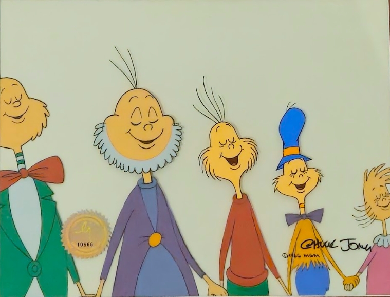 This is an original hand painted production cel used in making "How The Grinch Stole Christmas" 1966. Featured here are the Whos. This is signed by Chuck Jones. Contact us for shipping outside North America.