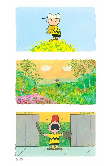 Triple Play is a beautiful limited edition giclee print. Inspired by the concept art for scenes 57, 65A & 67 in the animated film "A Boy Named Charlie Brown". Producer Lee Mendelson, of the Peanuts films, has signed each piece. Featured here is Charlie Brown. Available unframed.