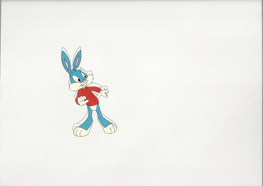 This is an original hand painted production cel with matching production drawing. Note: the drawing is attached to the cel. Featured here is Buster Bunny. Unknown episode. Comes with a gallery certificate of authenticity.30