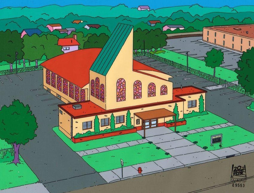 This is a hand painted production background used in making an episode of "The Simpsons". Episode 4F07 "Hurricane Neddy" December 29, 1996. In the episode The Flanders' home is blown down by a hurricane and the Leftorium is looted. Homer leads the rebuilding project, but will Ned be happy with his new house? This is really cool collectible for any Simpsons fan.