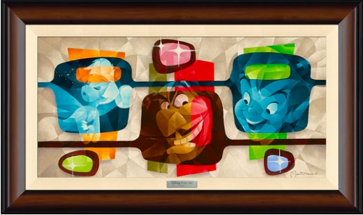 This is a limited edition giclee on canvas and comes framed as you see it, ready to hang. Featured here are Tinker Bell, Captain Hook and Peter Pan by Disney artist Tom Matousek. Contact us for shipping quote outside of North America.