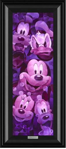 This is a limited edition giclee on canvas and comes framed as you see it, ready to hang. Featured here are Mickey Mouse, Goofy, Donald Duck, Minnie Mouse and Pluto by Disney artist Tom Matousek. Contact us for shipping quote outside of North America.