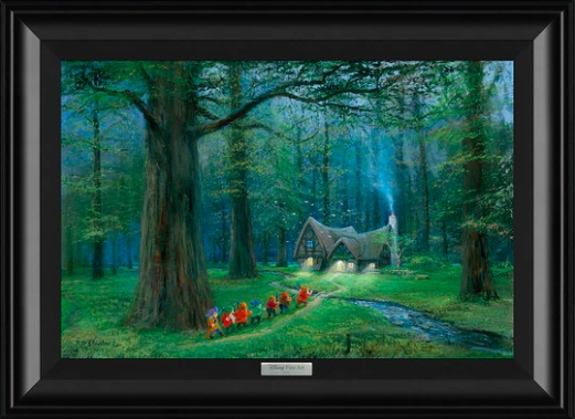 This is a limited edition giclee on canvas and comes framed as you see it, ready to hang. By Disney artist Peter Ellenshaw. Featured here are The Seven Dwarfs from Snow White. Contact us for shipping quote outside of North America.