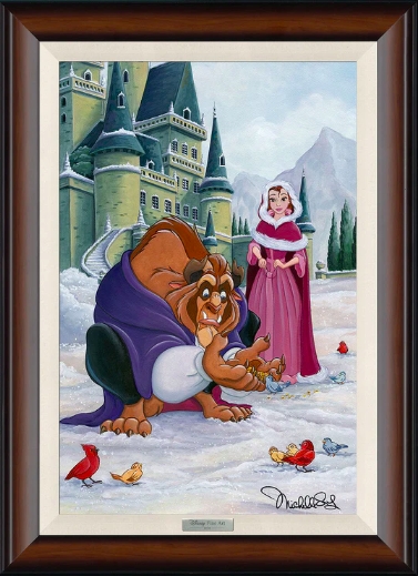 This is a limited edition giclee on canvas and comes framed as you see it, ready to hang. By Disney artist Michelle St. Laurent. Featured here are Belle and Beast. Contact us for shipping quote outside of North America.