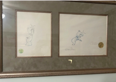 This is an original production drawing used in making "The Grinch" 1966. This is part of a private estate sale and comes with studio seal and certificate of authenticity. Comes unframed or framed as is. Featured here are the Whos. This is signed by Chuck Jones. Contact us for shipping outside North America.